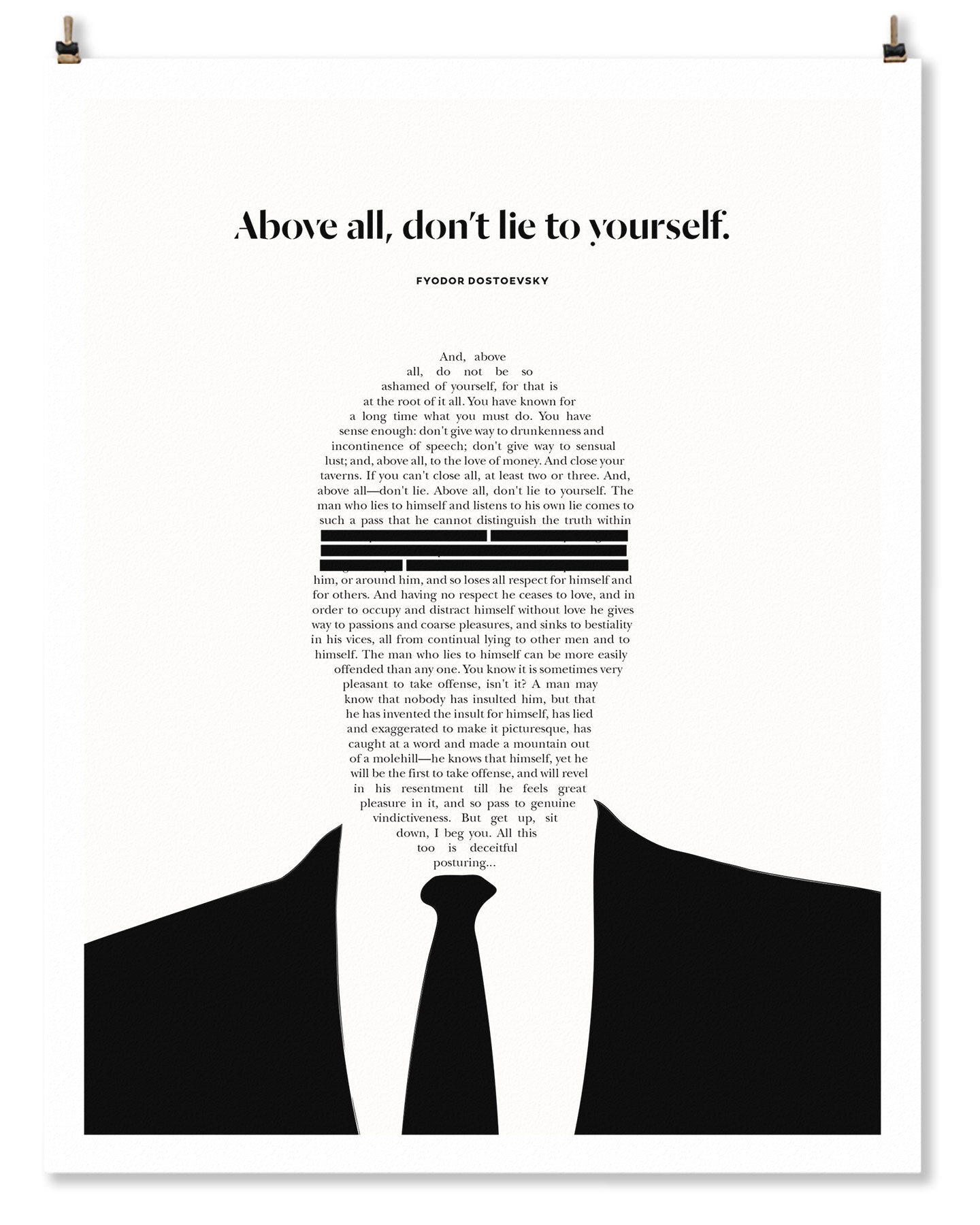 Don’t Lie to Yourself Quote Fyodor Dostoevsky, Literary Poster